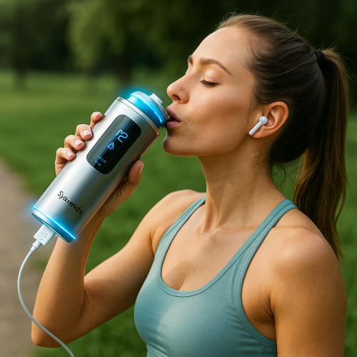 Смарт-бидон Pro 9 — это не просто ёмкость для воды. Это ваш персональный носимый резервуар с встроенным Wi-Fi, Bluetooth и голосовым помощником (пока только на мандаринском).